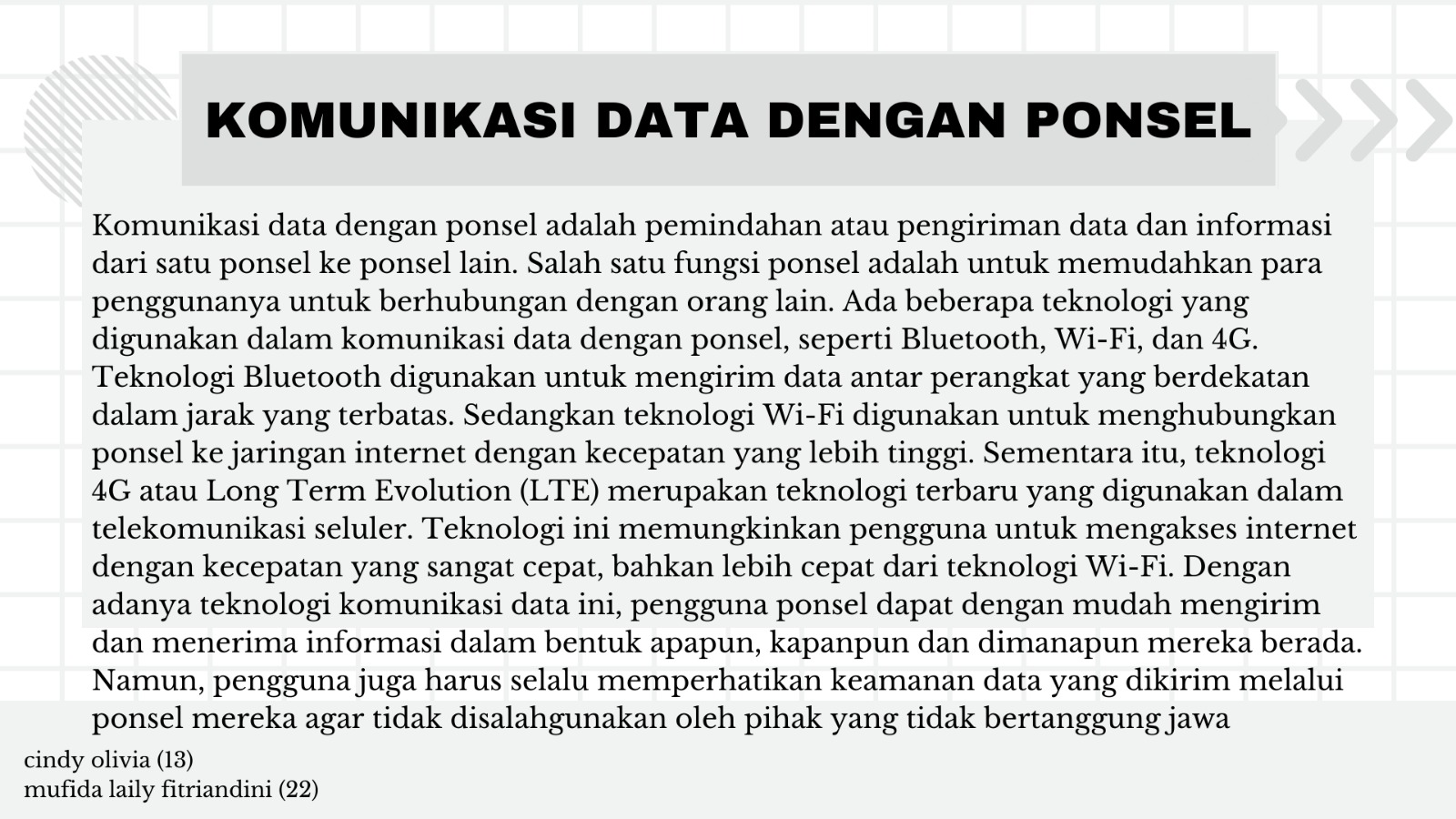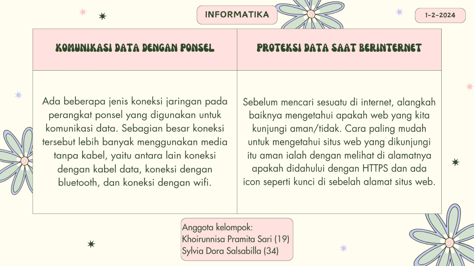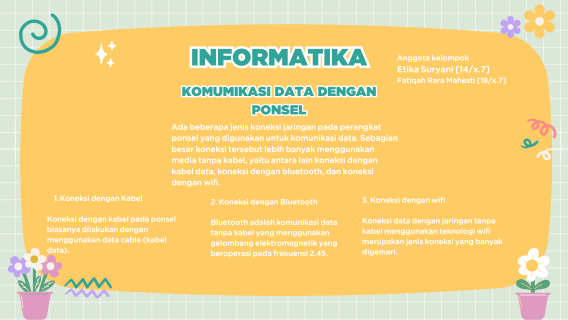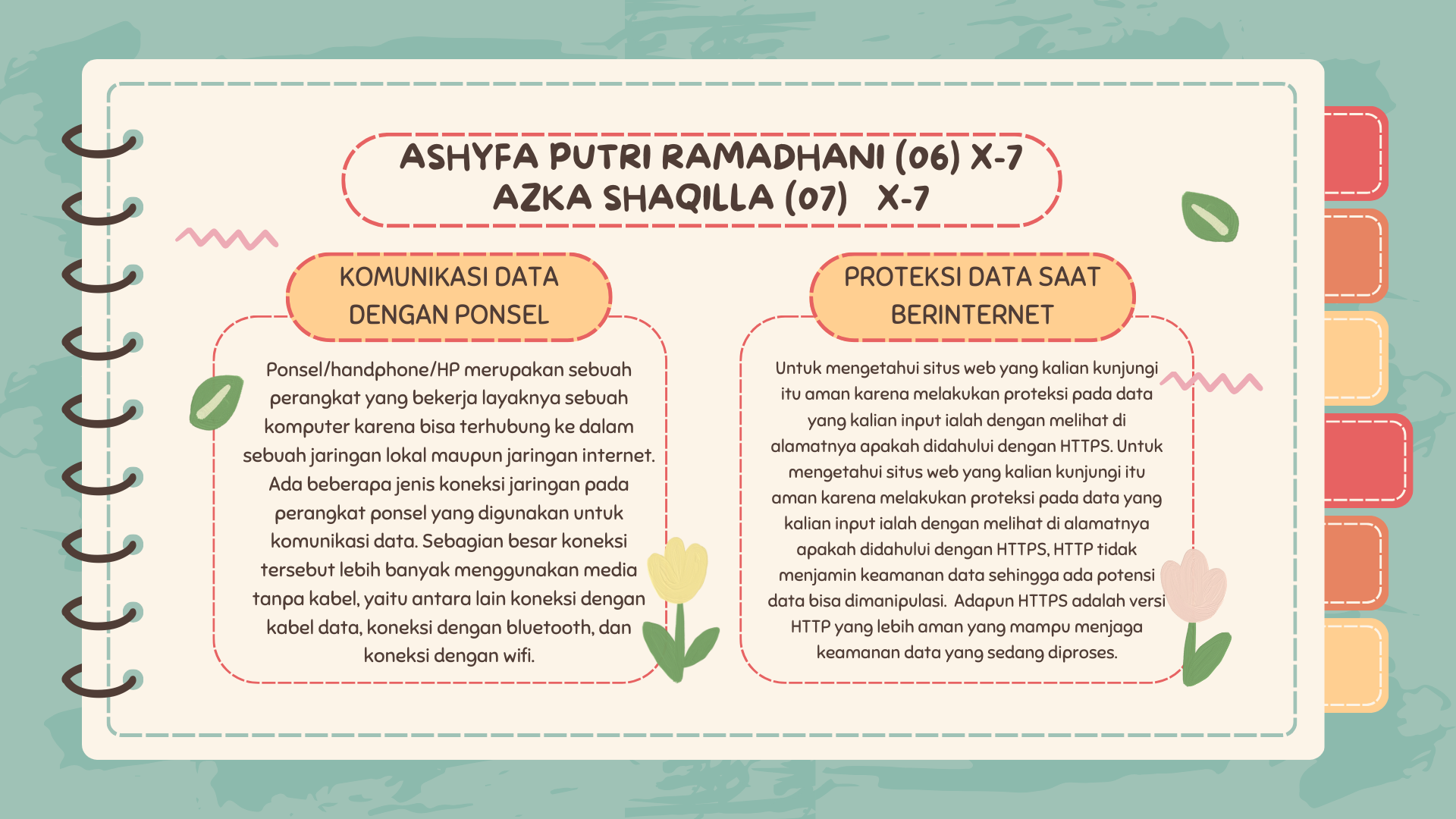 Web ini berisi Hasil Karya Kelas X.7 - 2023/2024, tentang materi Mapel Informatika, Bab Jarkom dan Inet, Sub-Bab Komunikasi Data dengan Ponsel dan Proteksi Data saat Berinternet.